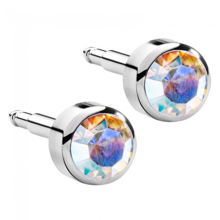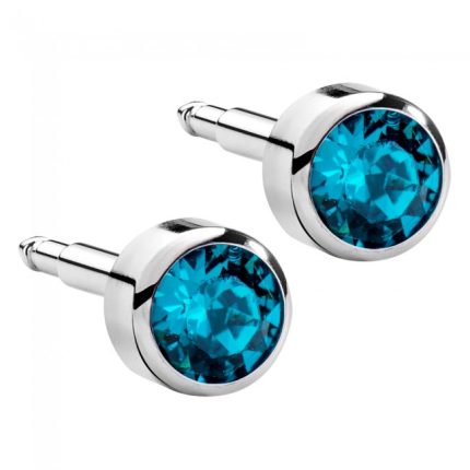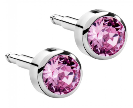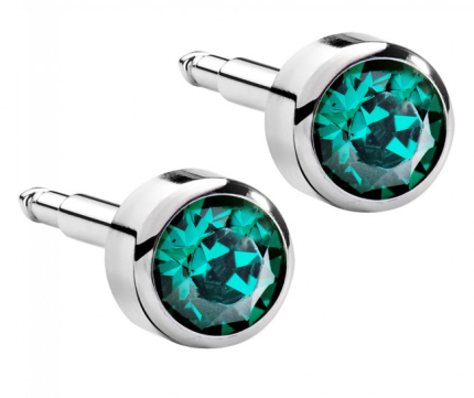 Завальцовані сережки пусети мають камінь, щільно зафіксований у металевій оправі. Така конструкція знижує ризик випадіння декоративного елемента та робить прикрасу максимально безпечною для первинного проколу.