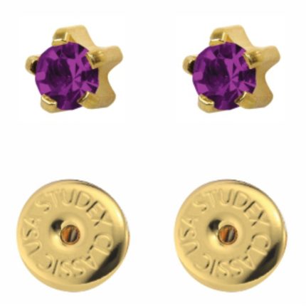 Сережки для проколу вух Studex, аметист завальцівка (з покриттям)